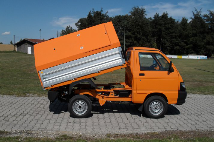 Dreiseitenkipper, Hochentleerung, Grasfanggitter, Kehrbesen, Kipp-Pritsche, Kastenaufbau, Verkaufsaufbau, Bordwanderhöhung, Scherenbühne, usw.